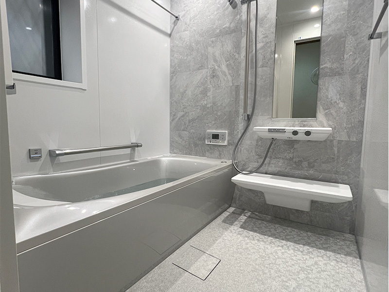 | 商品仕様 | 浴室:TOTO シンラ Cタイプ 1616サイズ(アクセントパネル:オニシアータグレー、周辺パネル:エニーホワイトグレー、浴槽:エレノアグレー) | ||